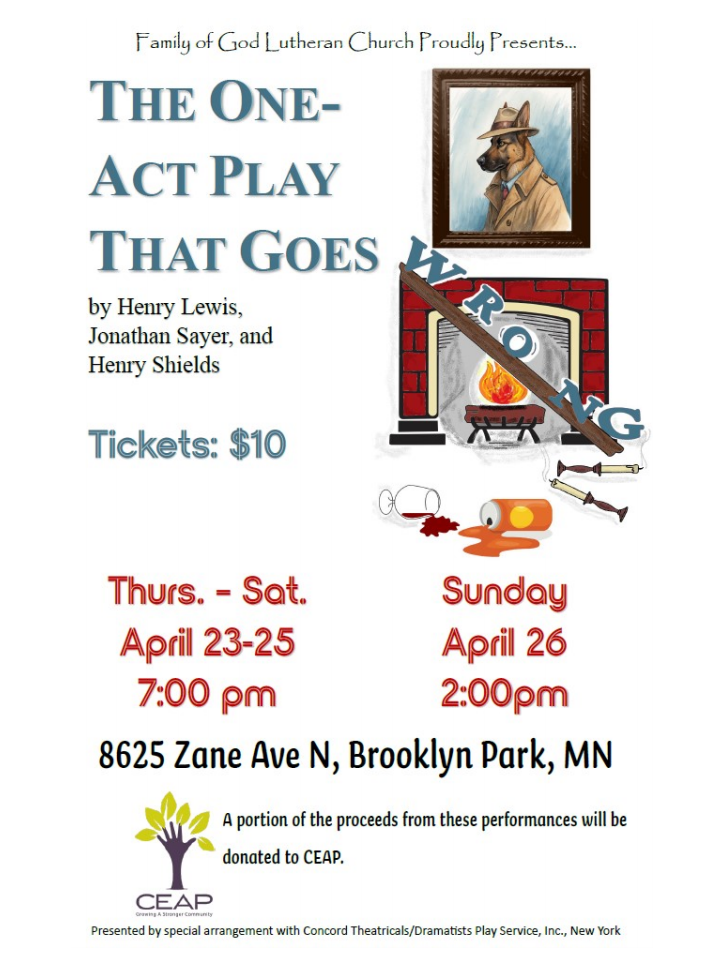 Drama Ministry and the Hospitality Committee Need You!! Volunteers are needed to help with ushering, concessions and treats for the April 23-26 performances of The One-Act Play that GOES WRONG.